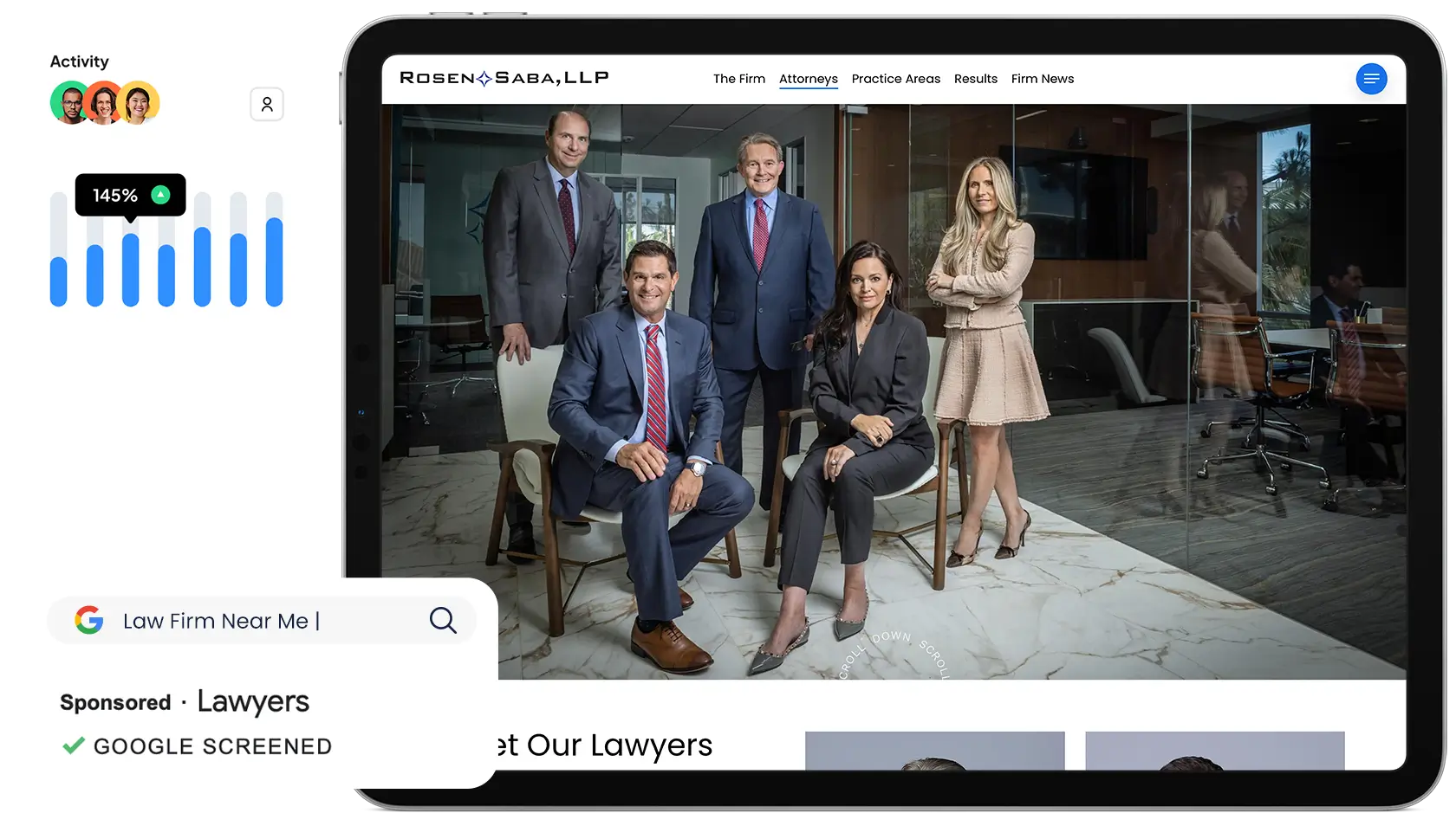 Attract more local clients with Google Local Service Ads (LSAs) for cost-effective, high-intent leads and local SEO strategies to rank higher, appear in Google’s 3-Pack, and drive more organic traffic to your firm.